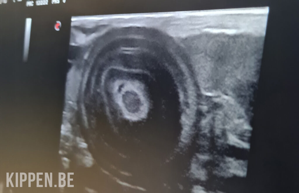 Je kan ook een echografie aanvragen bij je dierenarts. De onsteking is dan duidelijk te zien in de eileider van de kip: