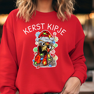Foute kersttrui met opschrift ‘Kerst Kipje’, heerlijke warme trui voor tijdens koude feestdagen. 50% katoen, 50% polyester.
